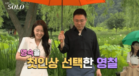 첫 지목 때도 옥순이 자신을 선택함에 은근히 좋아했던 영철은 자리바꿈 시간에 다시 옥순이 자신의 옆으로 자리를 옮기자 "이번 기수에 합류를 잘했다"며 옥순의 관심에 돌려 표현했던 모습이 인상적이었죠.