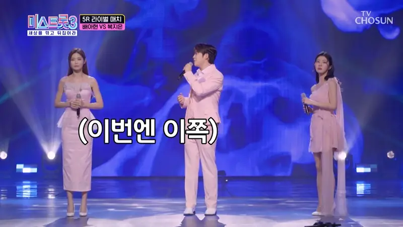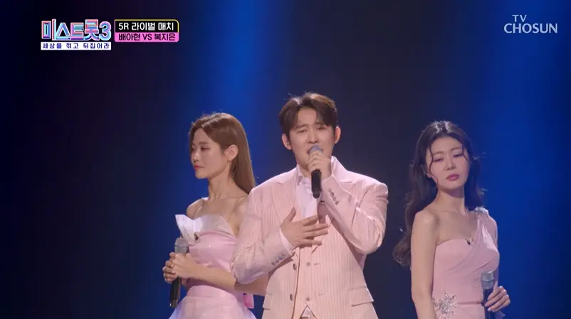 이날 5라운드 무대에서는 배아현은 진욱과 복진은의 라이벌전으로 장윤정의 '애가 타'를 무척이나 애가타가 불렀죠.