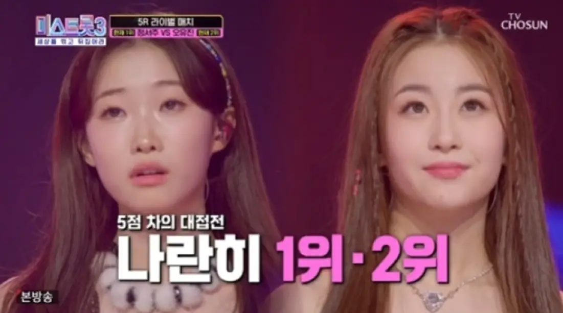 정서주와 오유진의 경연점수