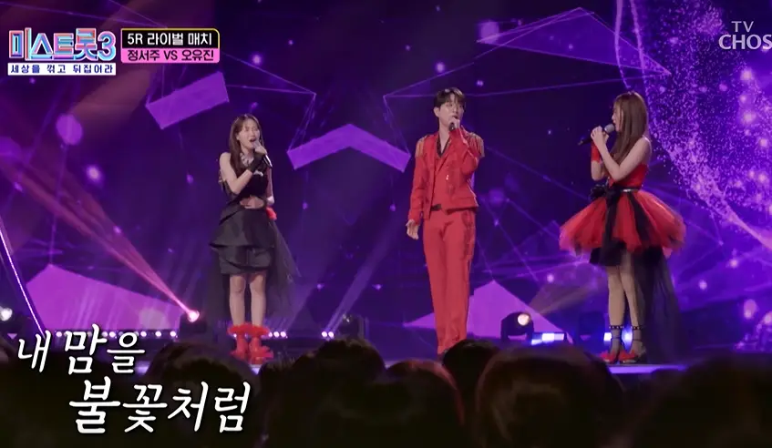 지난 15일 방송은 기존에 볼 수 없었던 전혀 새로운 시도가 돋보이는 무대를 선보였는데요 바로 2명의 경연자와 1명의 미스터 트롯 2의 수상자가 함께하는 삼각대전을 펼쳤습니다. 이번시간에는 미스트롯 3 9회 정서주 오유진 안성훈 결승진출무대 삼각대전 점수와 순위등에 대하여 알려드리겠습니다.