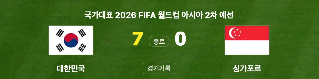 2026년 북중미 월드컵 진출을 위한 대한민국과 싱가포르의 첫 예선전이 11월 16일 오후 8시에 열렸습니다. 이미 예상했던 대로 대한민국의 국가대표선순들은 첫출발부터 월등히 앞서나갔고 그에