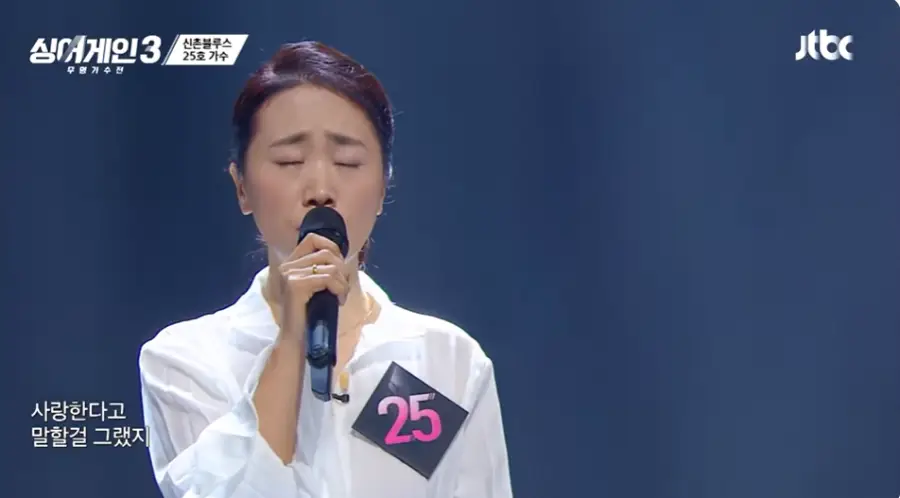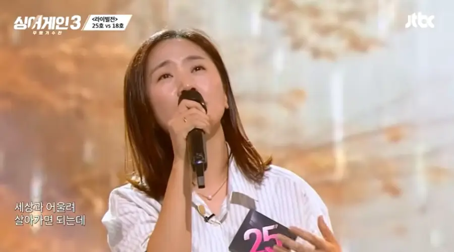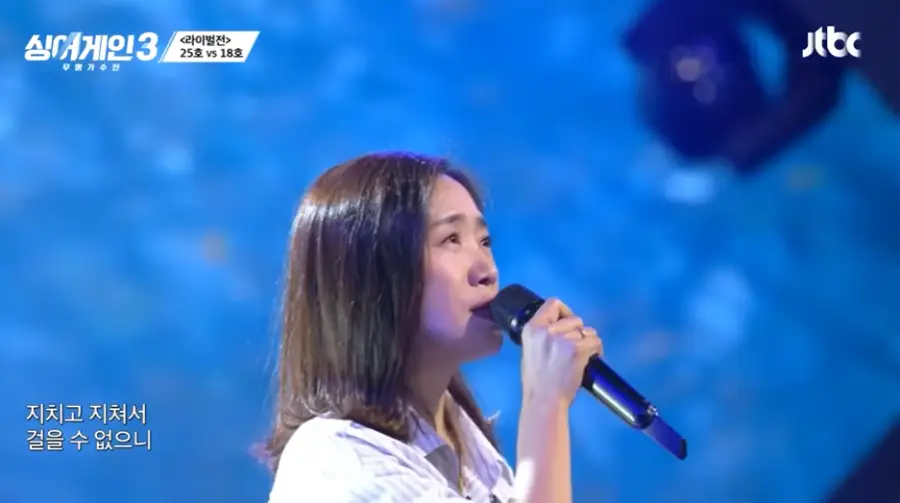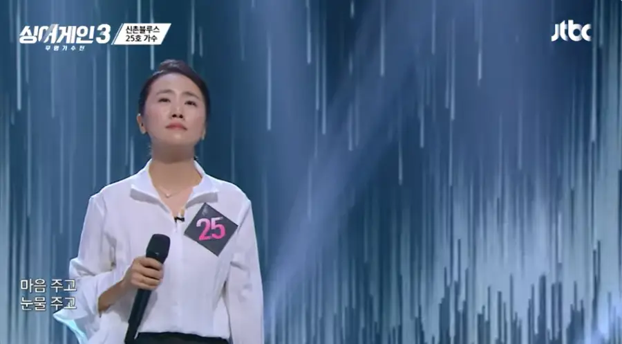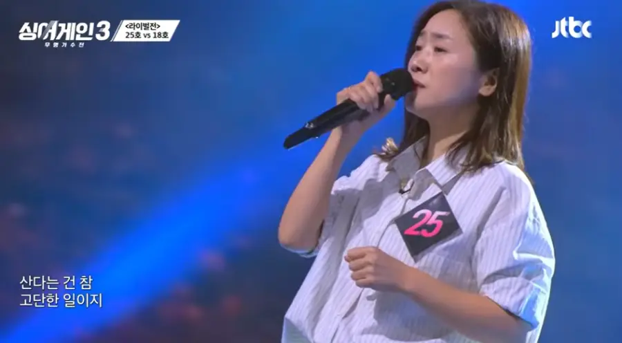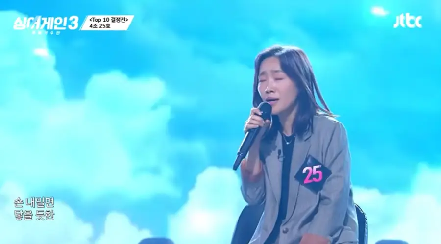 구슬프고 애절한 그녀만의 감성과 호소력 짙은 목소리로 노래가 미처 끝나기도 전에 심사위원 전원의 all어게인을 받은 전설적인 곡이었습니다. 모두의 찬사를 받으며 기쁘게 첫 무대를 마친 25호에게 코드쿤스트는 "칼에 베이는 듯한 느낌을 받았다"는 평을 하고 김이나 심사위원은 '섹시하다'라는 평까지 들으며 찬사가 부족하지 않은 무대를 만들었습니다.