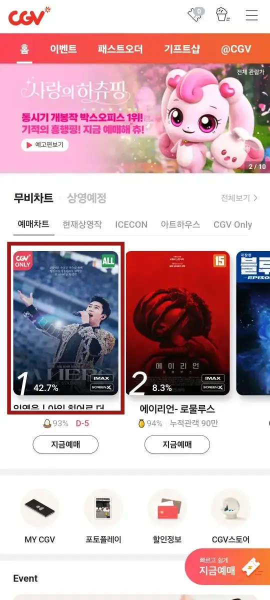 임영웅 영화 콘서트 관람을 위해 우선 CGV 어플을 설치하셔야 합니다.