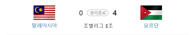 E조 말레이시아 경기 결과