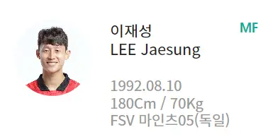 | 김민재 | 김영권 | 김주성 | 김진수 |