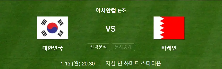 오늘은 오는 1월 15일에 펼쳐질 카타르 아시안컵 대한민국 대 바레인전의 경기일정과 무료중계 등에 대해 알려드렸습니다.